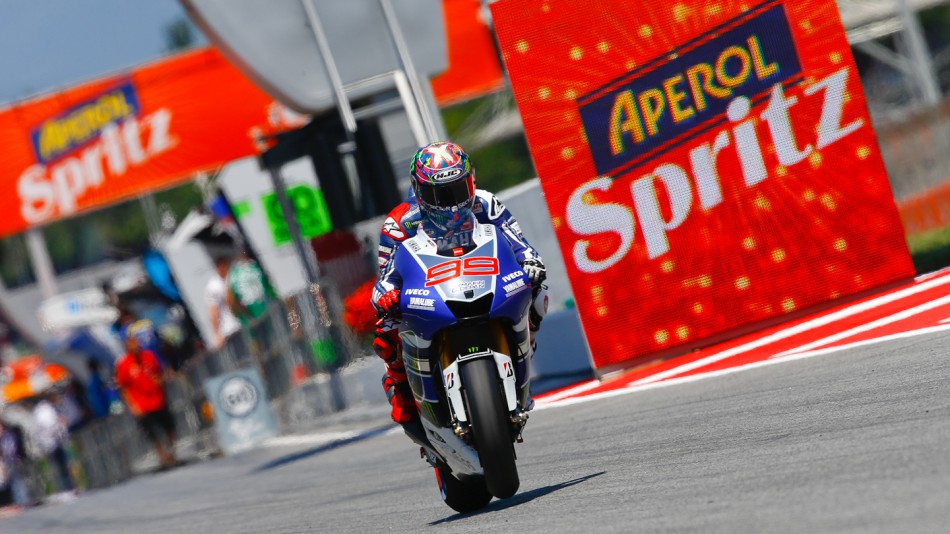 Jorge Lorenzo, Yamaha Factory Racing, Montmelo Q2No obstante, el mallorquín no pudo rodar lo deseado por un problema en el embrague. "Perdimos 6-7 minutos y tuve dos minutos para hacer la vuelta rápida. Con la segunda moto no me siento igual que con la primera, hacer pole era imposible hoy y hacer segundo o tercero no importa demasiado", apuntó sobre el hecho de quedar detrás de Cal Crutchlow, con una Yamaha satélite.