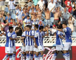 Con la vista puesta en el martes donde ante el conjunto francés se jugarán englobarse con los mejores equipos de Europa, la Real venció apoyado en el dominio del balón y en las geniales acciones de su dupla atacante, Vela - Seferovic. El nuevo técnico de la Real, que se estrenó con triunfo en Liga, decidió reservar en el once inicial a Xabi Prieto y Antoine Griezman, jugadores claves durante la anterior temporada.