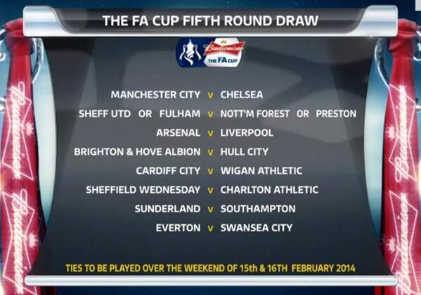 Antes, Rodallega salvó al Fulham ante el Sheffield United, equipo de la tercera división inglesa, que además jugó casi la segunda mitad entera con un jugador menos, con un tanto en el minuto 75 que forzaba el replay. Con los dos últimos partidos de dieciseisavos disputados se celebró el sorteo de octavos, el cual deparó fuertes enfrentamientos.