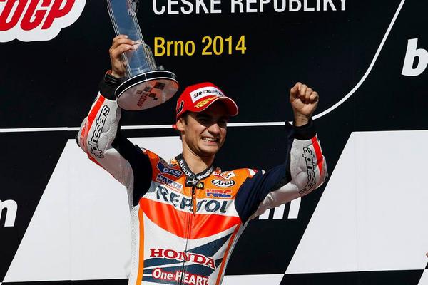 El tres veces campeón del mundo confesó que van "en buena línea para afrontar la segunda parte de la temporada". "Esto nos confirma que hemos trabajado bien, porque una victoria no es cosa de un fin de semana, sino del trabajo de mucho tiempo y de mucha gente. Nos centramos en recuperar las buenas sensaciones y trabajar desde ahí", señaló Pedrosa.En este sentido, confesó su buen feeling desde el comienzo del fin de semana en el Gran Premio de Brno. "El sábado la calificación estuvo apretadísima. Muy raro, teniendo en cuenta que es un circuito largo. ¡Más apretada que en Moto3!. El objetivo era estar en primera línea pero fue realmente complicado, con tantos pilotos en tan pocas décimas", sentenció.
