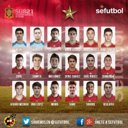 La Rojita volverá a contar con la presencia de los delanteros barcelonistas Munir El Haddadi y Sandro Ramírez, así como el extremo culé cedido al Sevilla Gerard Deulofeu. El también sevillista Denis Suárez, cuya ausencia en el play-off ante Serbia fue una de las sorpresas, retornará para comandar un centro del campo en el que Celades contará con Moi Gómez, Saúl Ñíguez, Sergi Samper, Víctor Camarasa, Álvaro Medrán y Unai López.