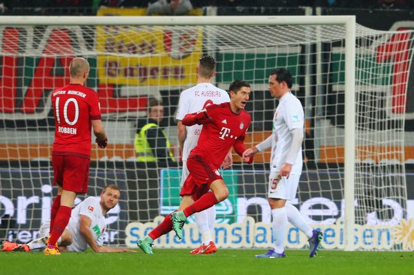 El Bayern de Múnich se impuso al Augsburgo en el encuentro que cerraba la vigésimo primera jornada de la Bundesliga gracias a un doblete de Robert Lewandowsky y otro tanto de Muller (1-3) y mantiene en ocho la distancia con el Borussia Dortmund, que también ganó su partido este sábado ante el Hannover (1-0).