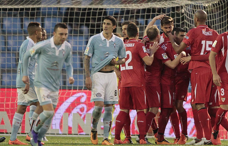 Llegaba el Celta herido, necesitado de un triunfo revitalizante tras el mazazo de la Copa después de perder en el Ramón Sánchez Pizjuán por 4-0, y camino de los vestuarios esa herida aún se agrandó más después de que el portugués Carriço lo golpease tras un saque de esquina, en una acción similar a la del primer gol sevillista el pasado jueves.