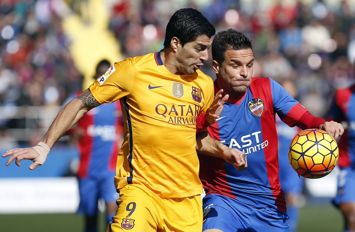 El FC Barcelona ha sufrido este domingo para llevarse la victoria del Ciutat de València ante el colista Levante (0-2), en duelo en el que un tanto en propia puerta de David Navarro y otro del uruguayo Luis Suárez, ya en descuento, permitieron a los azulgranas igualar el récord de partidos sin perder de la historia del equipo.