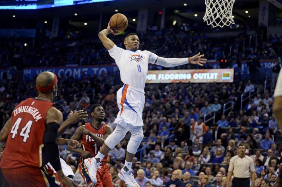 Kevin Durant y Russell Westbrook, cada uno con 23 puntos y el segundo rozando de nuevo el triple-doble (10 asistencias y 9 rebotes) lideraron la incontestable victoria local en el último partido antes del parón por el All Star, mientras que Ibaka jugó 30 minutos y embocó un 7/15 en lanzamientos de campo. Con su trío de jugadores a pleno rendimiento, los Thunder se impusieron en los parciales de los cuatro cuartos ante un rival liderado por Anthony Davis (23).