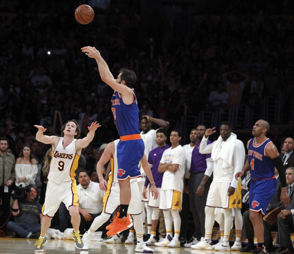 El base español José Manuel Calderón se erigió este domingo en el gran protagonista de la victoria de su equipo, Nueva York Knicks, ante Los Angeles Lakers, gracias a un triple en el último segundo para imponerse por 87-90.