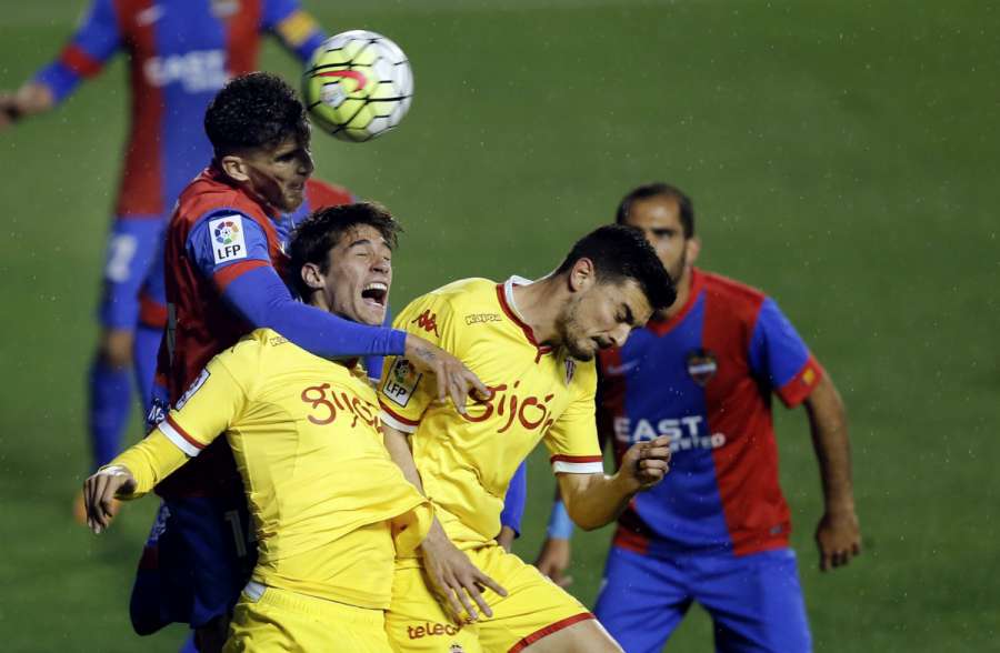 El Levante y el Real Sporting de Gijón se han repartido los puntos (0-0) que ponía en juego el último partido por disputarse de la jornada 31 de la Liga BBVA, tras pecar de falta de puntería bajo la lluvia para romper la igualada inicial, manteniéndose los dos clubes en la zona roja a falta de siete encuentros ligueros por disputarse.