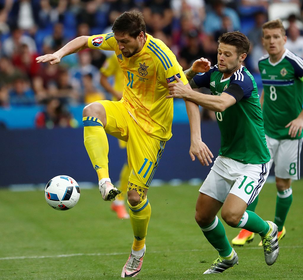 Por su parte, los ucranianos se obcecaron en su costado izquierdo, llenando de balones a Konoplyanka y Sevchuk. Sin embargo, éstos no encontraron la posibilidad de combinar y sus adentradas resultaron estériles, cayendo una y otra vez en el entramado defensivo dispuesto por Michael O'Neill.La escasa fluidez del juego dotó de una relevancia especial al balón parado, donde el extremo sevillista obtuvo los galones a la hora de botarlos. Sin embargo, los norirlandeses enmudecieron al sector exsoviético dando el primer golpe con esa misma moneda.