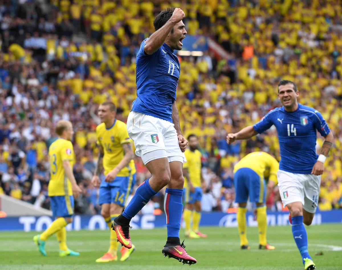 El refresco de Simone Zaza dio más movilidad al ataque italiano, y se la puso de cabeza a Éder para que este se fuera solo contra el mundo. Dejó atrás hasta a cuatro defensas amagando con el disparo y abriéndose hueco hasta fulminar a Isaksson con un fuerte disparo ajustado al palo. Un buen gol que bien vale la segunda victoria de Italia y el billete para los octavos.Un gol a falta de 2 minutos para el final, sin contar un tiempo añadido donde Suecia reclamó un penalti sobre Granqvist en una acción muy protestada por los escandinavos. Y, antes del gol de Éder, en el minuto 83, tuvo el gol Italia con un gran centro al segundo palo de Giaccherini que Parolo remató de cabeza con precisión para enviar el balón al larguero. La mejor ocasión sin duda del partido antes del tanto de la victoria.