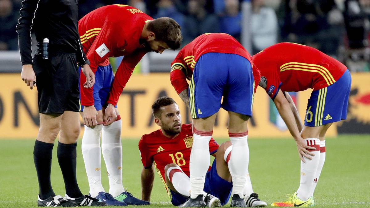 El lateral izquierdo del FC Barcelona se retiró en el minuto 22 del partido ante Italia en Turín (1-1), y fue sustituido por el madridista Nacho Fernández.