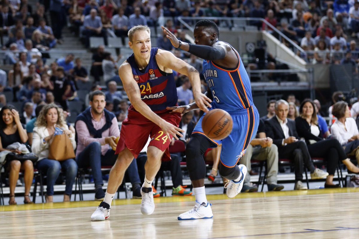 El guión no fue el previsto. Después de la derrota que escoció a Rusell Westbrook y al resto de la muchachada de Billy Donovan, entre ellos el español Álex Abrines, a pesar del manido argumento de que los nba están aún en el arranque de la pretemporada, se esperaba a los Thunder mucho más enchufados desde el primer salto.En cambio, los de Georgios Bartzokas -con las bajas de Rice, Ribas, Kopponen y Lawal- salieron intensos en defensa y sin complejos, dinámicos en la circulación en los dos primeros cuartos, con un Ante Tomic y Víctor Claver brillantes, hasta provocar un tiempo muerto de un enfadado Donovan, con 32-28 para el conjunto azulgrana y la amenaza de repetir el disgusto de Madrid.
