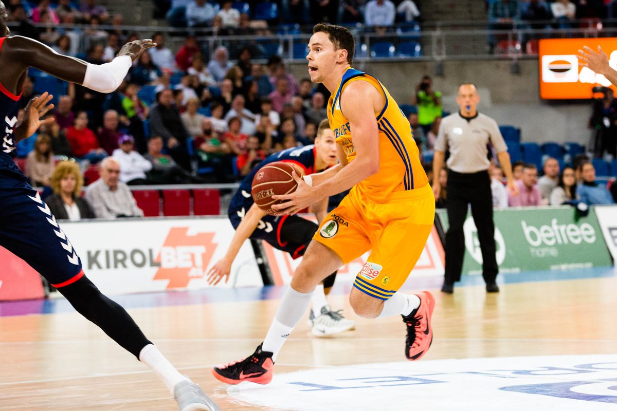 Del inicio de descontrol, pérdidas y poco acierto sólo pudo escaparse sin alardes hasta el último cuarto el conjunto vasco. Los de Sito Alonso mandaron en el marcador ante el pobre acierto de su rival y por medio de Adam Hanga y Tornike Shengelia en el primer tiempo (34-28). Pese a no tener su día, los de Luis Casimiro aguantaron hasta el último cuarto, donde rompió el partido el Baskonia a base de triples y exhibición de mates.