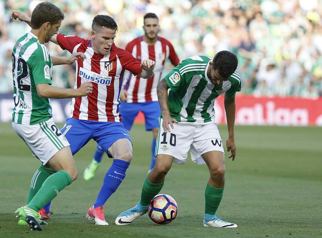 Durante la primera parte, el Atlético ni siquiera tiró a puerta frente a un Betis que, liderado por el talento y las ganas de Dani Ceballos, inquietó en varias ocasiones a Jan Oblak, el más destaxcado de su equipo. Fue precisamente el utrerano quien dispuso de la mejor ocasión en el minuto 24, un disparo seco y cruzado desde fuera del área que se estrelló en el poste.Tras el paso por vestuarios, Ceballos finalmente encontró premio a su insistencia en el minuto 57, cuando cazó un balón llovido y empalmó una volea muy potente hacia el centro de la portería de Oblak, que vio el balón tarde al estar tapado por su zaga y llegó a tocar el balón, pero no pudo impedir que se alojara en la red.