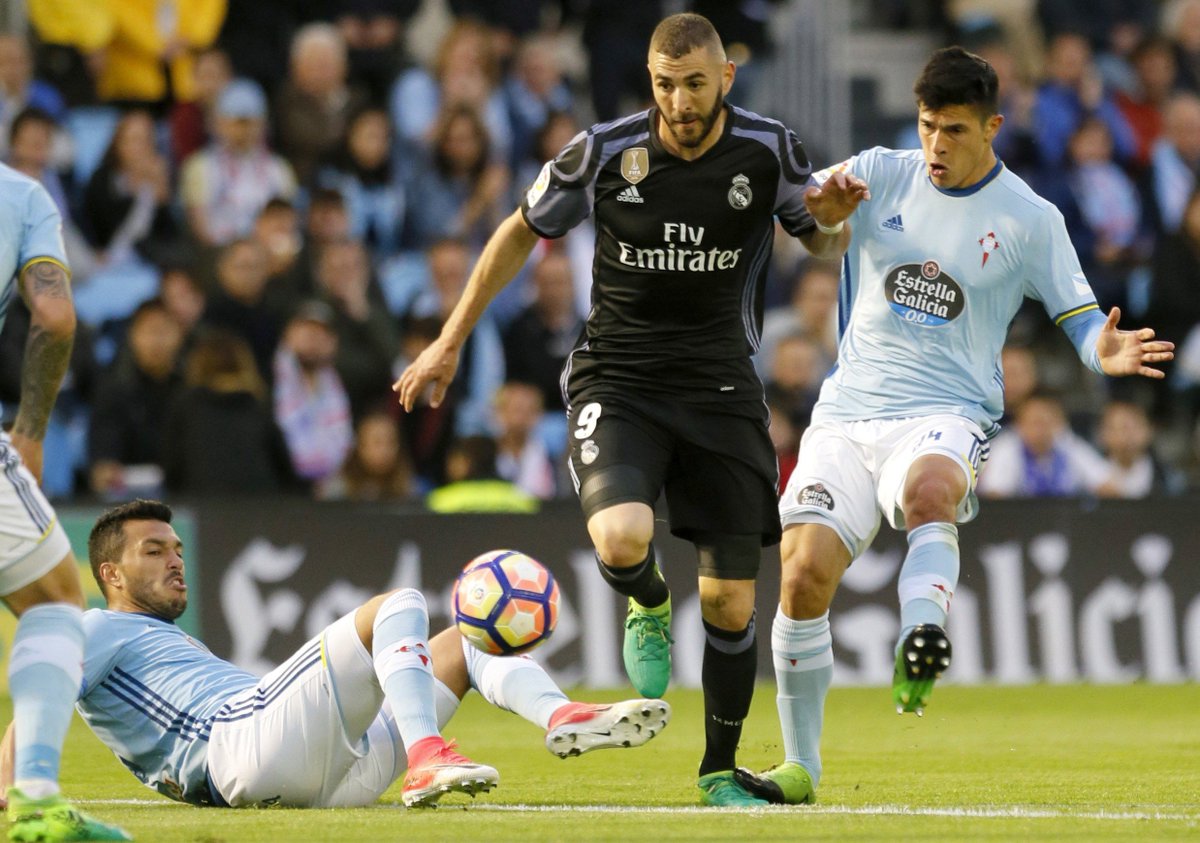 Sin embargo, el partido varió en la jugada siguiente. El guion apuntaba a los mejores minutos del Celta pese a jugar con uno menos e incluso que su fuerza terminaría por encerrar al Madrid en su área. Pero nada más lejos de la realidad, Benzema marcó en la jugada siguiente. El francés fue la luz del más caprichoso de los guionistas y marcó a placer una jugada de Marcelo.