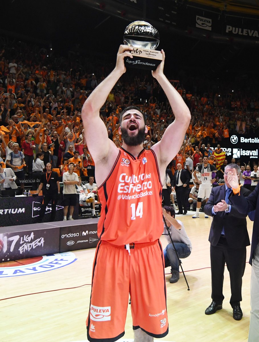 El pívot del Valencia Basket Bojan Dubljevic ha sido elegido como MVP de la final de la Liga Endesa, un Playoff por el título que coronó este viernes al cuadro taronja en el cuarto partido ante el Real Madrid.Dubljevic, que llegó a Valencia en 2012, se convirtió en el tercer jugador balcánico que logra este galardón tras Dejan Bodiroga y Erazem Lorbek. El pívot montenegrino fue vital en la primera liga de la historia del conjunto valenciano. Su presencia este viernes en el rebote marcó las diferencias en favor del equipo de La Fonteta (52-26).