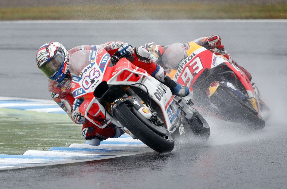 El piloto italiano Andrea Dovizioso (Ducati) se ha impuesto este domingo en la carrera de MotoGP en el Gran Premio de Japón por delante del líder del Mundial, el español Marc Márquez (Repsol Honda), que ha terminado segundo, y ha apretado así el Mundial de la categoría reina, que continúa liderando, ahora con sólo 11 puntos de ventaja, el de Cervera.