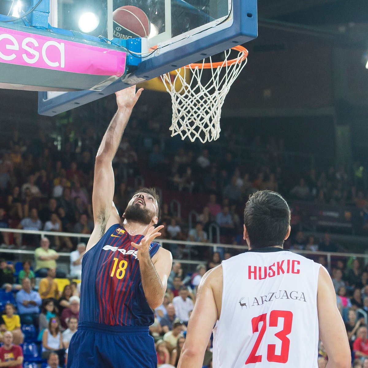 Huskic entraba por el bando visitante para reforzar el juego interior, pero entonces irrumpió en el choque Oriola, que debutaba con los azulgranas en la Liga Endesa después de que un esguince de tobillo le dejara fuera de la rotación en las dos primeras jornadas.