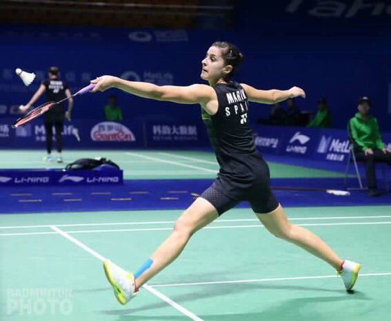 La onubense arrancó el duelo con contundencia, dominando el marcador y sin darle ninguna opción a la china. De hecho, la primera gran ventaja fue 8-1. Poco a poco He Bingjiao fue mejorando y acercándose en el marcador. Sin embargo, la reacción fue un espejismo y Marín acabó llevándose el primer acto (21-15).La china, número 10 del ránking mundial, fue a más en el segundo set y tras superar el 5-0 inicial de la española, acabó imponiéndose en una igualadísima manga (22-24) para equilibrar el duelo.