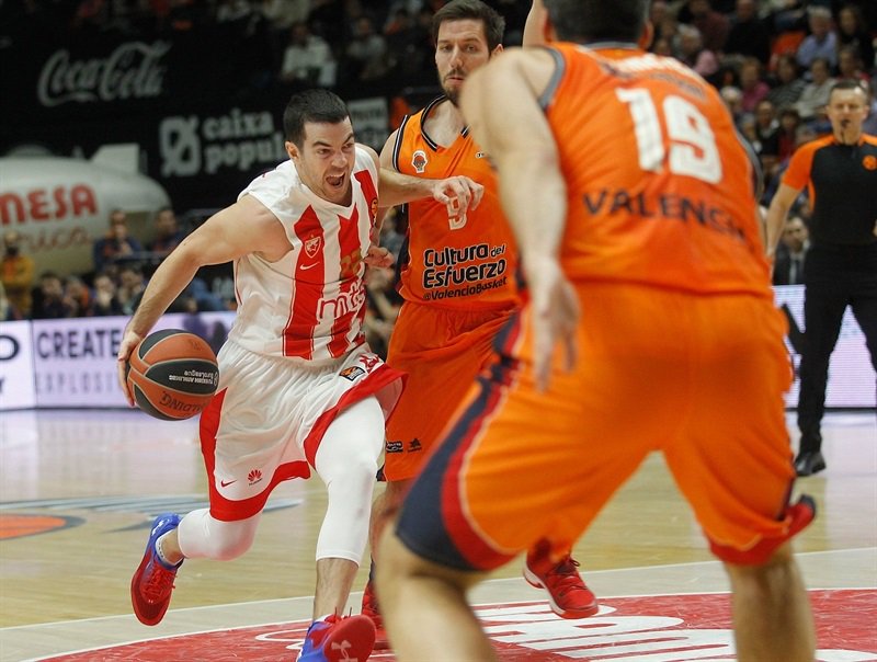 Aún trató de levantarse un Valencia que volvió a ponerse por delante en un último minuto en el que lapidaron sus opciones con dos pérdidas de San Emeterio y Van Rossom. De esta forma, el conjunto taronja se queda con un balance de 3-9, a tres victorias de los play-offs, mientras que el conjunto de Belgrado se pone 5-7.Un Estrella Roja con aires renovados gracias a sus victorias ante Real Madrid y Anadolu Efes comenzó su asalto a La Fonteta con un tremendo acierto. A pesar de quedarse sin Bjelica por faltas, los visitantes gozaron de una gran aportación de banquillo y una buena dirección de Rochestie, que lanzó a los suyos ya en el segundo cuarto (22-33).