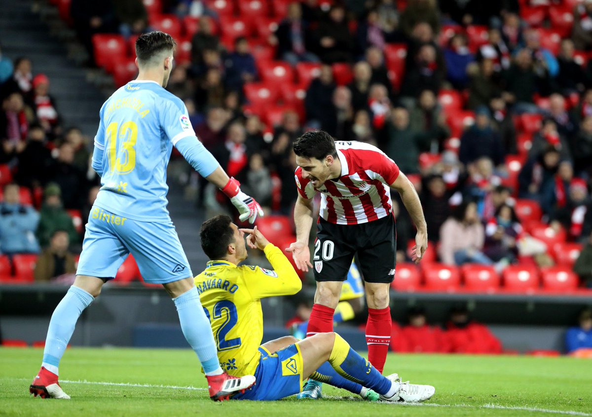 Los canarios, que incomodaron el cuadro local en la presión, buscaron adelantarse poco después con un disparo lejano de Jonathan Viera que finalmente se marchó muy por encima del larguero; el delantero también desperdició un pase de Tana al filo del descanso. Antes, pasada la media hora, Jémez señalaba a Hernán Toledo, que no evidenciaba problemas físicos, y mandaba ingresar a Tana al terreno de juego.Tras el paso por vestuarios, ambos equipos buscaron con más ahínco el área contraria. Chichizola se vio obligado a actuar en los primeros minutos ante dos disparos de Susaeta y Aduriz, y ya en el minuto 61 Kepa desbarató una buena ocasión de Nacho Gil.