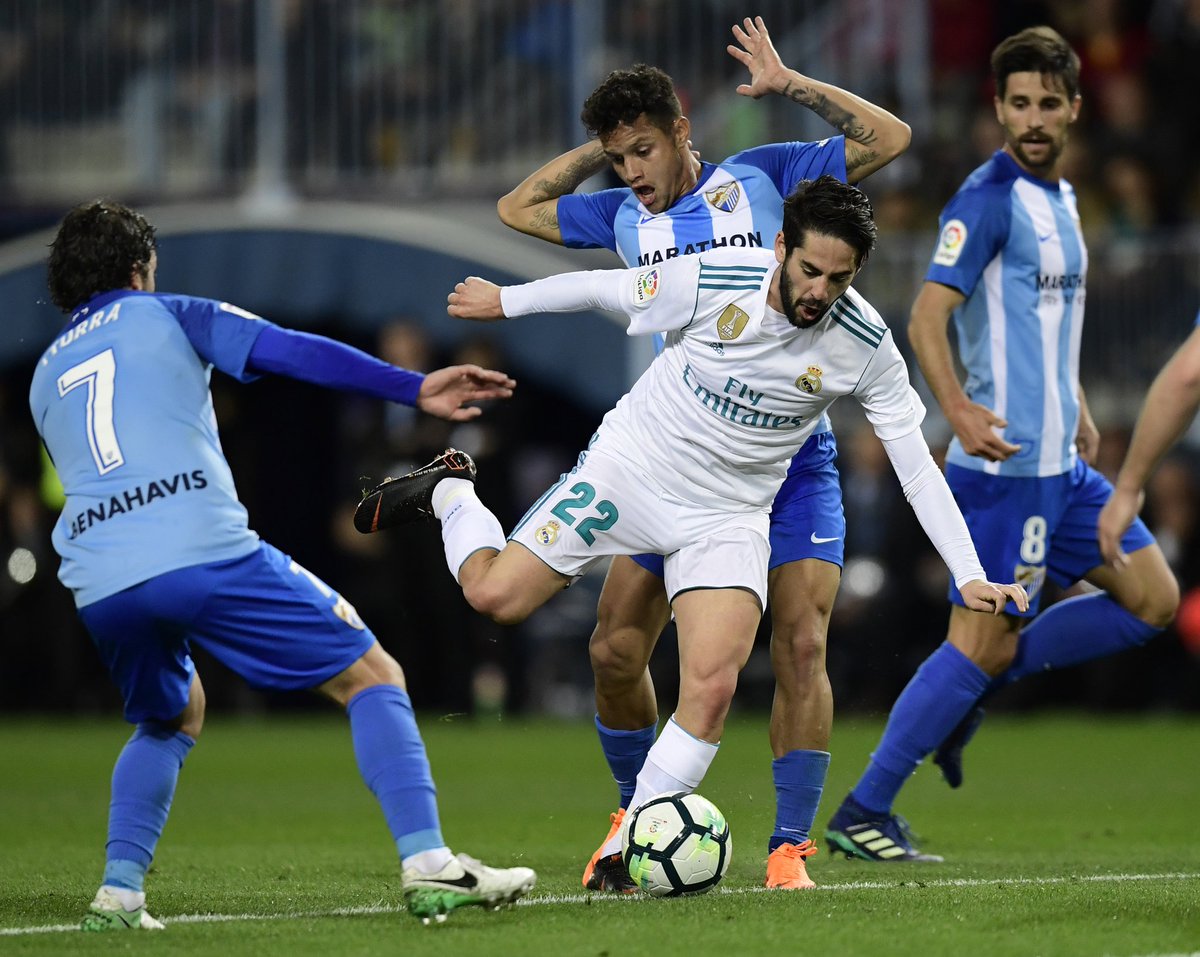El conjunto blanco disfrutó de buena profundidad por bandas desde el inicio, con Lucas Vázquez y Asensio. Benzema, faro arriba sin Cristiano Ronaldo, volvió a sufrir la falta de acierto que le lastra esta temporada, pero Isco se encargó de abrir la lata a la media hora. El jugador malagueño pidió perdón a la afición local tras su gran gol de falta y quizá por la manera de someter a su Málaga.