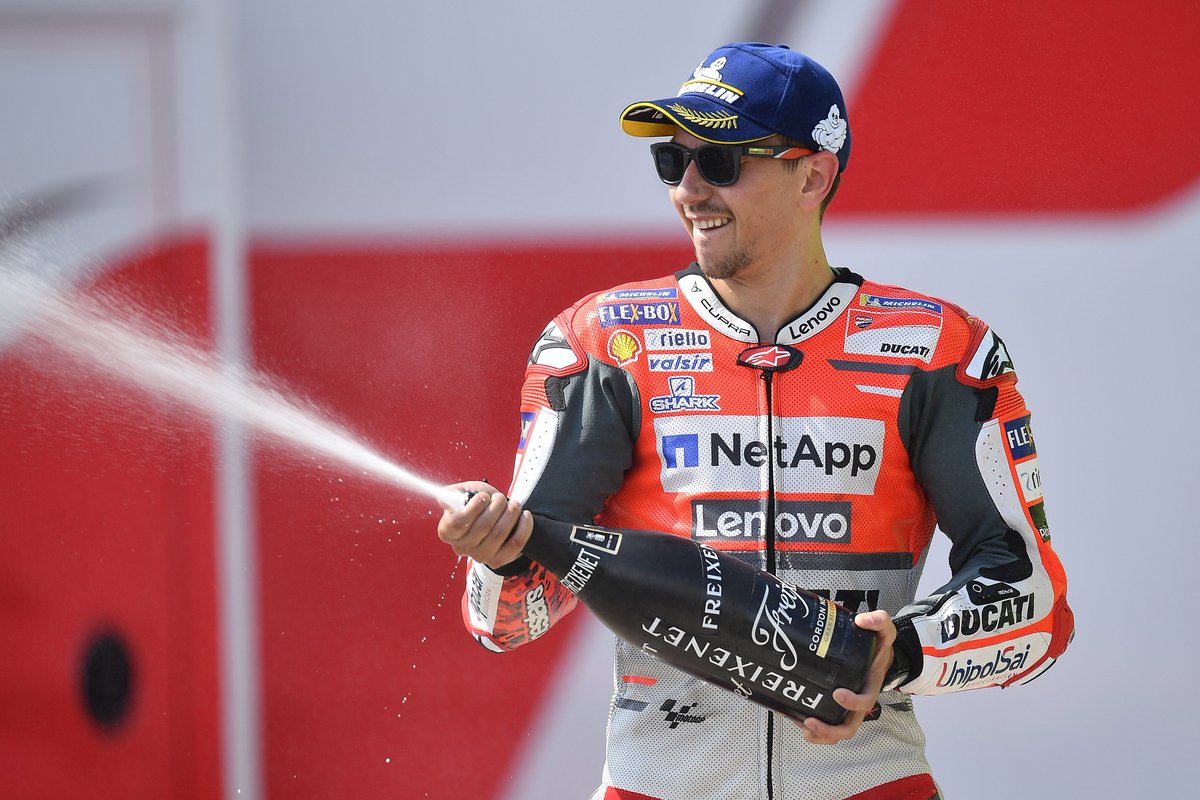El mallorquín está viendo un gran cambio en su moto respecto a las primeras citas del calendario. "Las mejoras en comparación a las primeras carreras han sido enormes, tuvimos mala suerte en Catar, podría haber acabado quinto o cuarto pero me caí, luego fue difícil con la nueva moto. En Mugello conseguí ganar y, a partir de ahí, se vio un Jorge distinto. La última carrera fue fantástica, en el test del lunes mejoramos y hemos sido competitivos con neumáticos usados", indicó.Pese a ello, el balear apuntó que necesitan mejorar en cuanto a velocidad. "Creo que todavía necesitamos dos o tres décimas de velocidad para ganar. Remontar tantos puntos a Marc es imposible ahora mismo, todo esta bastante igualado en todos los fabricantes. Marc no suele caerse, pero todo es posible en MotoGP, es un deporte peligroso. Aún así, la diferencia de puntos es mucha. A mí me gustaría ganar el campeonato, y si no, quedar segundo, y si no, tercero o cuarto", manifestó.