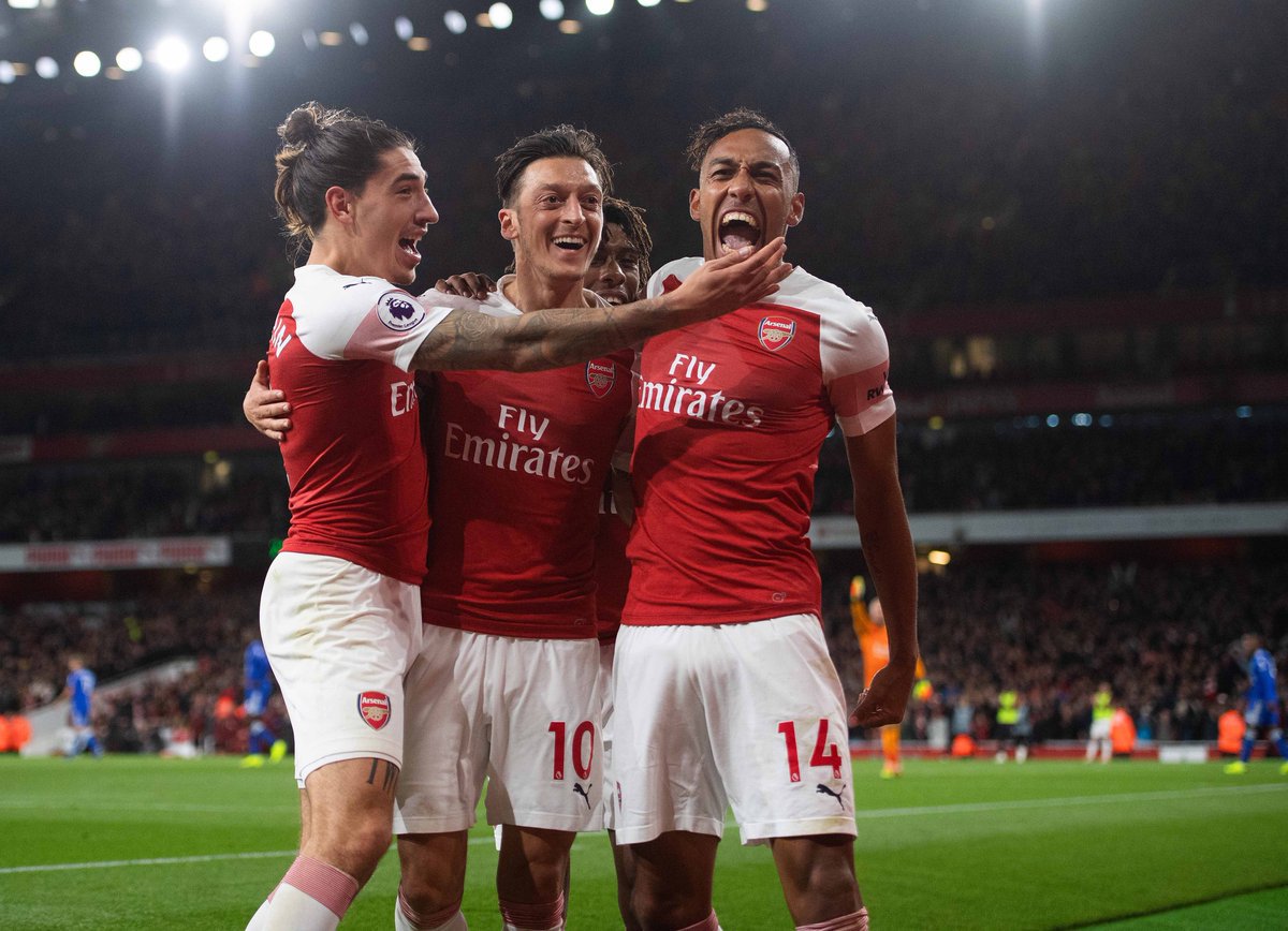 El Arsenal ha remontado este lunes ante el Leicester City en el Emirates Stadium (3-1) en el último partido de la novena jornada de la Premier League, un duelo en el que los de Unai Emery neutralizaron el tanto de Héctor Bellerín en propia puerta con el gol de Özil y el doblete de Aubameyang.