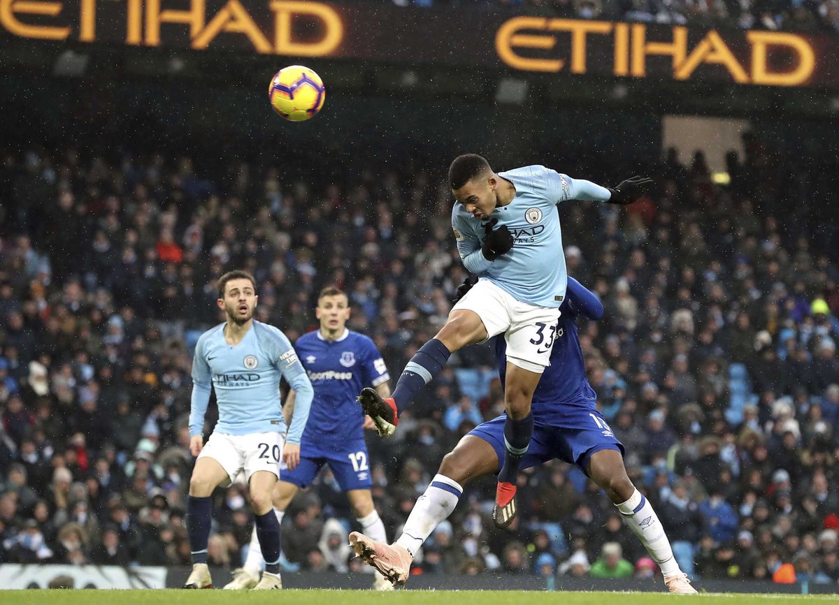Un doblete del ariete brasileño Gabriel Jesus (minutos 22 y 50), a sendos pases del mediapunta alemán Leroy Sané, fraguó la derrota del Everton en el Etihad Stadium. Dominic Calvert-Lewin recortó distancias en el 65', pero de inmediato Raheem Sterling de cabeza hizo para los locales el 3-1 definitivo.Por otra parte, el Tottenham ganó al Burnley sobre la bocina (1-0) gracias a un gol de Eriksen cuando ambos equipos daban por bueno el empate. Los Spurs, recién clasificados para octavos de Champions, continuarán una jornada más en la tercera posición del campeonato inglés, donce acumulan tres victorias consecutivas.