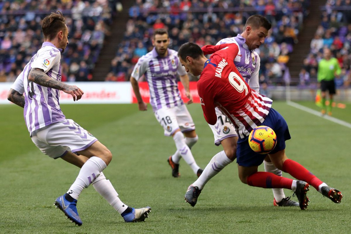 Rodrigo cortó el ataque rival, Correa prolongó a Griezmann y el francés regaló el balón a Kalinic tras un pase entre las piernas de Kiko Olivas. La jugada fue exquisita y el delantero croata definió al primer toque con mucha clase. La cuesta empezaba a declinarse para los rojiblancos cuando sus méritos estaban lejos del equipo vallisoletano.